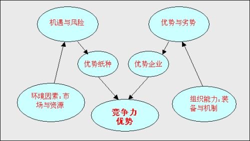 影響造紙行業競爭的因素有很多,但關鍵因素有四項,即市場、資源、裝備、機制。市場與資源是企業的外部因素,決定了某個地區生產哪個紙種有競爭優勢;裝備與機制是企業的內部因素,是企業能力的體現,決定了該企業是否有競爭優勢。