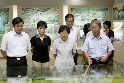 在會議室里,黃志源總裁發表了熱情洋溢的致詞,他簡短介紹了金光集團尤其是金東的基本情況,著重談到了金東的生產、管理、文化,同時,黃總裁對陳主任和國務院僑辦給予金光集團的幫助與支持表示了衷心的感謝。聽取匯報后,陳主任大加贊賞了金光集團的“林漿紙一體化”的循環經濟道路,贊揚了金東對環保、對地方經濟所做得貢獻。同時她指出,前段時間,APP遭遇到一些困擾,對此,我們要辯證的看待,要化壓力為動力。