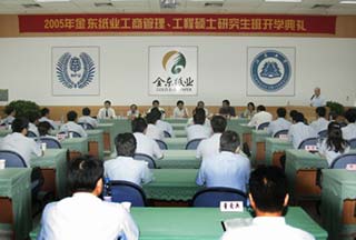 2005年9月6日,金東紙業與江蘇大學、南京林業大學合作舉辦的工商管理(MBA)、造紙工程碩士研究生班開學典禮在金東公司隆重舉行。