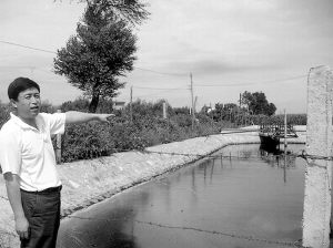 陳隊(duì)長(zhǎng)領(lǐng)著記者來(lái)到被雜草和大片玉米地包圍著的廣進(jìn)公司兩座露天污水處理池,緊挨著這兩池水,有一條明渠排水溝。