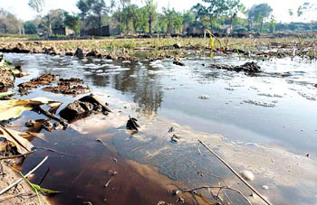 為什么好端端的良田成為污水池呢?楊文亮告訴記者說,他們這里本來是一年種兩季的莊稼地,每年都有好收成,但由于該村東鄧莊鎮(zhèn)范圍內的小造紙廠將污水排在他們地頭的一條季節(jié)性雨水渠里,污水不斷流入莊稼地里,現(xiàn)在別說兩季莊稼了,就是種玉米也得看運氣。