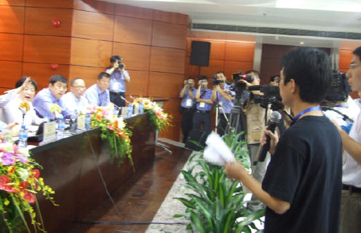 5月7日上午10點,玖龍紙業在主辦公樓會議廳舉行新聞發布會,來自于國內(包括香港)各大新聞媒體及造紙行業主要媒體的百余名記者參加了新聞發布會。玖龍董事長張茵女士首先就前期香港SCACOM的“血汗工廠”指責,進行了正面回應,并接受了記者的提問。會上,記者針對前期公眾關心的問題踴躍提問,氣氛十分熱烈。會后,在玖龍紙業工作人員的帶領下,各媒體記者分乘六輛中巴車參觀了玖龍的員工宿舍、餐廳和工廠主要工作場所。