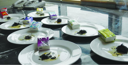 將面巾紙點(diǎn)燃后,記者將每一種都放進(jìn)一個(gè)白色瓷盤內(nèi),很快盤底就出現(xiàn)了黃色痕跡,用手摸上去感覺有點(diǎn)油,紙灰也帶有一點(diǎn)粘性。