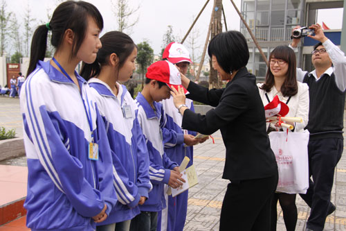 2010年“六•一”之際,黃奕聰慈善基金會的秘書長蘇薔華小姐第四次親赴學校,考察學校“APP世博零距離”活動開展情況,并在課間操時當場宣布了由學校推薦出來的赴上海參加世博活動的四位優秀學生代表名單,今年7月底他們將代表金光通濟中學來到上海,與來自甘肅、內蒙古、河北、福建等地的31名學校代表一起度過一個難忘而又有意義的“APP世博零距離”夏令營。