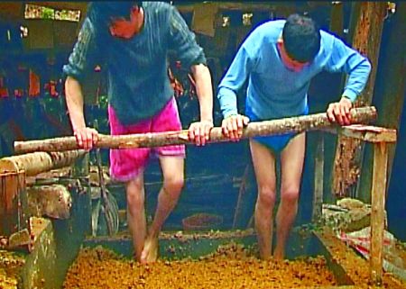 把竹子搗成泥 本組圖片由廖小姐攝于奉節(jié)