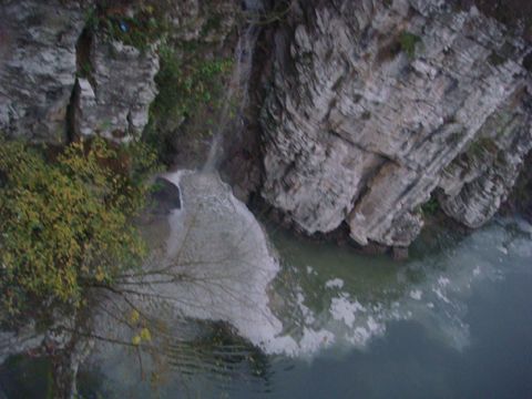 從照片來看,污水正從溶洞中泄出,流入南明河,被污染的河水上泛著白色的泡沫,形成一個長長的污染帶。