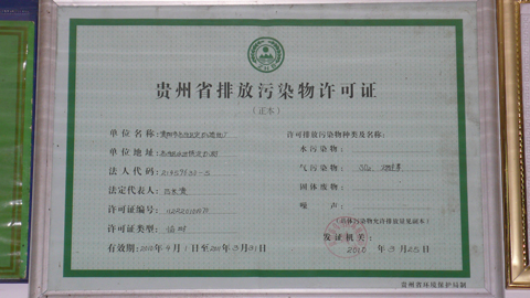 貴陽烏當區定扒造紙廠出具的《貴州省排放污染物許可證》