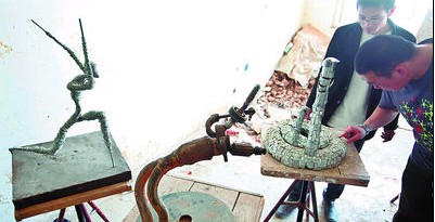 昨日,陳余說,同學用生銹鐵皮焊接的雕塑“殘荷”還在2010西安曲江新銳雕塑藝術展中獲獎。