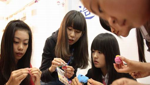 記者在現(xiàn)場看到,還沒有開館,這些造型獨特、顏色艷麗的紙質(zhì)小公仔DIY區(qū)就已經(jīng)圍滿了體驗者,臺北世界貿(mào)易中心參展代表胡曉璐告訴記者,從9月1日下午入館,截至到2日11時,已經(jīng)有100多人在這里進(jìn)行了免費體驗。