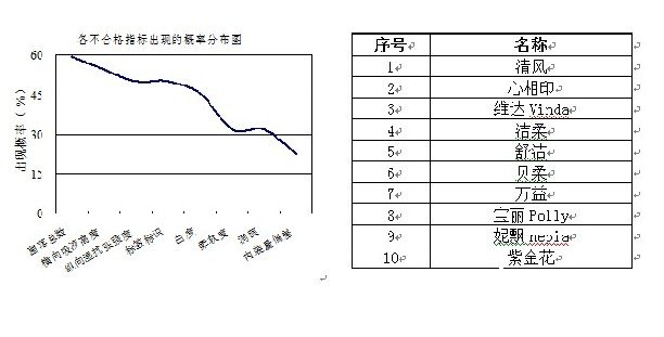 不合格紙巾紙產品中常見的不合格指標主要有菌落總數、橫向吸液高度和縱向濕抗張強度等。其中菌落總數、橫向吸液高度和縱向濕抗張強度出現的概率最高。質量信用排在前三名的廠家分別為清風、心相印和維達。消費者在選購紙巾紙時,盡量選用品牌信譽高的大、中型企業生產的紙巾紙;注意觀察紙巾紙外觀、生產廠名、保質期和QS標志等。