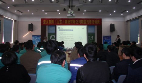 據了解,亞太森博是目前中國最大的木漿生產企業,運營著目前世界上單條規模最大、工藝技術裝備和環保水平領先的木漿生產線,從2013年4月開始,該公司為應對新的行業形勢,邀請國際知名顧問公司,引進日本豐田的精益生產和管理模式,從加工制造向優質、高效、品牌和提升核心競爭力轉變,通過推行精益管理和生產來適應日新月異的產業環境和全球經濟局面。除了日常推廣和利用,該公司每個月都利用一周的時間進行集中學習和案例實踐報告,稱為“精益改善活動周”。精益生產和管理取得了很好的經濟和社會效益,截至目前共節約資金近3億元。