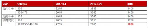 地牛牛卡:100g到廠價5245元/噸,130g-170g到廠價5045元/噸;