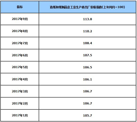 9月全國造紙和紙制品業(yè)工業(yè)生產(chǎn)者出廠價(jià)格指數(shù)