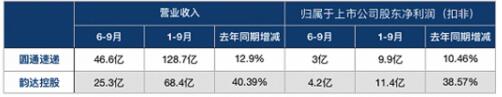 近日,圓通速遞和韻達控股相繼發(fā)布了2017年第三季度財務(wù)報告,兩家主要財務(wù)指標(biāo)如下,申通將于10月31日公布季報。