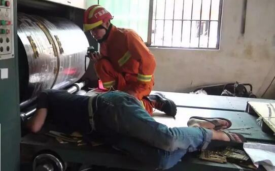 大約10分鐘,右邊的承軸成功切斷。但左邊的承軸離該男子被壓手臂較近,操作增加了一定難度,只能慢慢切割,切到一定深度后,再利用小型打磨機和手動鋸條進行切斷。最后,在液壓擴張器的配合下,成功救出被困男子。 據(jù)了解,被困男子是江西人,22歲。事發(fā)時紙皮印刷機處于開啟生產(chǎn)狀態(tài),該男子帶著耳機邊聽音樂邊操作機器。 當男子發(fā)現(xiàn)印刷機承軸邊有雜物紙屑,想也沒想就伸手去拿,結(jié)果手指不小心碰到承軸,整個手臂順勢被快速滾動卷入。在場的同事見狀,馬上關(guān)掉電源并第一時間報警求助。