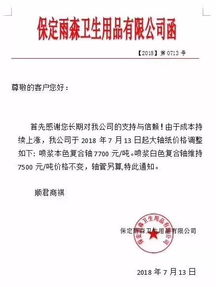 無獨有偶,據紙業君消息,7月份生活用紙原紙漲價涵也出現,隨著淡旺季交替,生活用紙是否將陸續迎來漲價?留言一起探討!