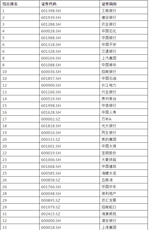 注:榜單按照計(jì)算得分進(jìn)行排名,排名相同的按照股票代碼排序。