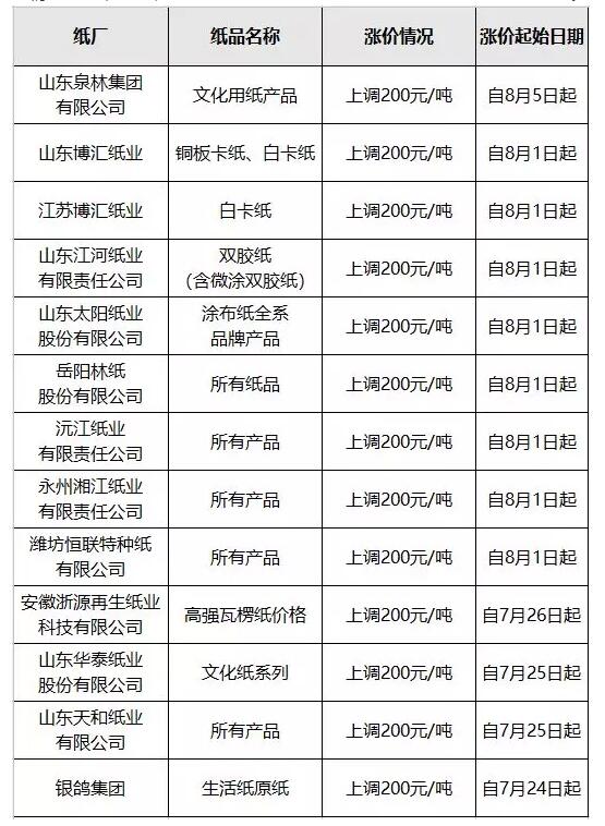 原料價格仍是懸在紙品行業上的一把刀 據悉,本周24日、25日開始,不少紙廠發布漲價函,并且不單單局限于文化紙,連包裝紙和紙板也加入其中漲價隊列,漲價函已經累積20張以上!根據漲價函情況來看,廢紙、紙漿等原材料仍是紙廠生產成本居高不下的重要因素。