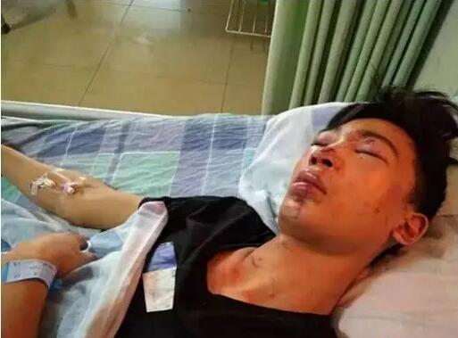 即將高二的吳焰江,沒想到自己的第一次暑假工歷程會是這樣的結局。8月2日,因為不堪工廠上班時間過長的重負,18歲的吳焰江向位于寮步鳧山的暑期工工廠辭工以及索要十多天的工資,結果遭到工廠管理人員的拒絕,而且還發生了肢體沖突。最后,吳焰江從工廠辦公室的二樓窗戶跳下。吳焰江聲稱,在跳樓之前,他遭到了3名工廠管理人員的圍毆!氨槐频奶,不跳的話,怕會被打死”。目前,吳焰江還在醫院接受治療。