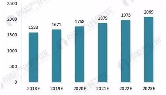 智能包裝是指通過(guò)創(chuàng)新思維,在包裝中加入了更多機(jī)械、電氣、電子和化學(xué)性能等的新技術(shù),使其既具有通用的包裝功能,又具有一些特殊的性能,以滿足商品的特殊要求和特殊的環(huán)境條件。其中涉及到保鮮技術(shù)、水溶膜包裝技術(shù)、二維碼技術(shù)、包裝性與結(jié)構(gòu)創(chuàng)新技術(shù)、便攜包裝技術(shù)、紋理防偽技術(shù)、磁共振射頻防偽識(shí)別技術(shù)、食品安全溯源方案技術(shù)等。 近些年來(lái)逐漸備受矚目的印刷電子技術(shù),就是是將傳統(tǒng)的印刷工藝應(yīng)用于制造電子元器件和產(chǎn)品,其最大特點(diǎn)是它們不依賴(lài)于基底材料的導(dǎo)體或半導(dǎo)體性質(zhì),可以以薄膜形態(tài)沉積到任何材料上。在絕大多數(shù)的智能包裝應(yīng)用中,都可以通過(guò)整合印刷電子技術(shù),實(shí)現(xiàn)更多“智能”屬性,例如在倉(cāng)儲(chǔ)、運(yùn)輸、銷(xiāo)售過(guò)程中的質(zhì)量信息記錄與表現(xiàn)等,并具備柔性、環(huán)保、低成本等優(yōu)勢(shì)。 我國(guó)是制造業(yè)大國(guó),每年生產(chǎn)出來(lái)的工業(yè)品大約是全球總量的30%。我國(guó)包裝行業(yè)的銷(xiāo)售總額在2013年就已經(jīng)超過(guò)萬(wàn)億,如今更是達(dá)到了1.7萬(wàn)億的級(jí)別。如果包裝行業(yè)能夠大規(guī)模使用智能包裝技術(shù)與產(chǎn)品,整個(gè)智能包裝行業(yè)的增長(zhǎng)幅度將會(huì)十分巨大。 據(jù)相關(guān)數(shù)據(jù)顯示,2016年我國(guó)智能包裝的市場(chǎng)規(guī)模達(dá)到1366.53億元,2017年達(dá)到1488.09億元,同比增長(zhǎng)8.90%;目前智能包裝細(xì)分市場(chǎng)規(guī)模最大的為RFID市場(chǎng),2017年RFID市場(chǎng)規(guī)模已達(dá)到752.4億元;未來(lái),隨著材料科學(xué)、現(xiàn)代控制技術(shù)、計(jì)算機(jī)技術(shù)與人工智能等相關(guān)技術(shù)的進(jìn)步,以及中國(guó)市場(chǎng)化進(jìn)程的加快,國(guó)民收入的提高和全球品牌商品的進(jìn)入,一個(gè)相當(dāng)大的零售和消費(fèi)市場(chǎng)將在中國(guó)形成,并且快速增長(zhǎng)。市場(chǎng)的快速形成與成長(zhǎng),勢(shì)必拉動(dòng)智能包裝的迅猛發(fā)展。預(yù)測(cè),到2023年,中國(guó)中國(guó)智能包裝行業(yè)市場(chǎng)規(guī)模有望突破2000億元。 2018-2023年中國(guó)智能包裝行市場(chǎng)規(guī)模預(yù)測(cè)(單位:億元)
