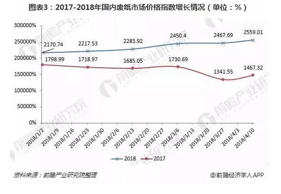 三、國內(nèi)價(jià)格持續(xù)上漲 在我國,造紙中使用廢有較大部分來自進(jìn)口。造紙業(yè)協(xié)會(huì)統(tǒng)計(jì)數(shù)據(jù)顯示,2017年我國廢紙漿消耗量為6302萬噸,其中2063萬噸來自進(jìn)口廢紙制漿,依存度為為32.7%。隨著嚴(yán)苛的外廢進(jìn)口標(biāo)準(zhǔn)實(shí)施,廢紙進(jìn)口量的大幅下滑,導(dǎo)致國內(nèi)原料供應(yīng)短缺,促使市場(chǎng)形成廢紙供給缺口,國廢替代性需求上升,推動(dòng)國廢價(jià)格應(yīng)聲上漲。據(jù)中國再生資源回收利用協(xié)會(huì)廢紙分會(huì)統(tǒng)計(jì),2018年1月-4月,國內(nèi)日均廢紙價(jià)格指數(shù)為2343,而去年1-4月日均廢紙價(jià)格指數(shù)為1656,同比增長(zhǎng)41.4%。