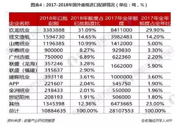 四、龍頭企業(yè)受益 受黨中央領(lǐng)導(dǎo)對(duì)于進(jìn)口洋垃圾的高度重視,環(huán)保執(zhí)法力度日益趨嚴(yán),我國進(jìn)口廢紙審批總額度審批愈發(fā)嚴(yán)格,從2015年的5347萬噸迅速降低到2017年的2713萬噸以及2018年的1088萬噸。政策面收緊導(dǎo)致2018年我國進(jìn)口廢紙數(shù)量銳減,上半年我國累計(jì)廢紙進(jìn)口數(shù)量為710萬噸,同比下降52.2%。 雖然造紙龍頭企業(yè)的進(jìn)口總額度也呈下降趨勢(shì),但是在全國總額度中的占比迅速增加,從2018年外廢分配情況看,而龍頭企業(yè)占比明顯提升,前三家(玖龍、理文山鷹)配額從2016年47.0%提升到2017年49.1%以及2018年的56.7%,,前十企業(yè)占比從2016年的65.4%上升至87.6%。獲得配額的企業(yè)數(shù)由160家下降至66家。廢紙進(jìn)口集中度持續(xù)提升,龍頭公司成本優(yōu)勢(shì)進(jìn)一步擴(kuò)大。由于國廢外價(jià)差拉大,僅因外廢配額一項(xiàng),玖龍、理文和山鷹額外利潤就分別達(dá)到了45.6、21.6和16.2億元。