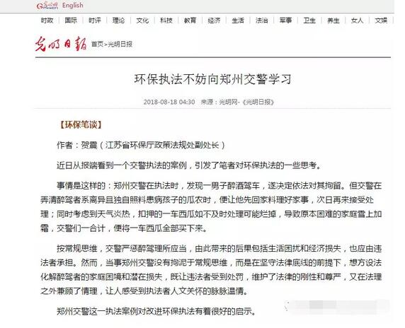 環(huán)保執(zhí)法不妨向鄭州交警學(xué)習(xí) 【環(huán)保筆談】 作者:賀震(江蘇省環(huán)保廳政策法規(guī)處副處長) 近日從報端看到一個交警執(zhí)法的案例,引發(fā)了筆者對環(huán)保執(zhí)法的一些思考。 事情是這樣的:鄭州交警在執(zhí)法時,發(fā)現(xiàn)一男子醉酒駕車,遂決定依法對其拘留。但交警在弄清醉駕者系離異且獨自照料患病孩子的瓜農(nóng)時,便讓他先回家料理好家事,次日再來接受處理;同時考慮到天氣炎熱,扣押的一車西瓜如不及時處理可能爛掉,導(dǎo)致原本困難的家庭雪上加霜,交警們一合計,便將一車西瓜全部買下來。 按常規(guī)思維,交警嚴(yán)懲醉駕理所應(yīng)當(dāng),由此帶來的后果包括生活困擾和經(jīng)濟損失,也應(yīng)由違法者承擔(dān)。然而,當(dāng)事鄭州交警沒有拘泥于常規(guī)思維,而是在堅守法律底線的前提下,想方設(shè)法化解醉駕者的家庭困境和潛在損失,既讓違法者受到處罰,維護了法律的剛性和尊嚴(yán),又在法理之外兼顧了情理,讓人感受到執(zhí)法者人文關(guān)懷的脈脈溫情。 鄭州交警這一執(zhí)法案例對改進環(huán)保執(zhí)法有著很好的啟示。 近年來,某些地方在環(huán)保執(zhí)法中簡單粗暴,違反法定程序執(zhí)法的情形時有發(fā)生。比如,有的查封扣押農(nóng)民的脫粒機,致使玉米霉變,使當(dāng)事農(nóng)民生計陷于困頓;有的強制要求在極短時間內(nèi)把養(yǎng)殖場拆除干凈,而不顧一大群活豬活雞并非一兩天就能售賣處理掉的事實,使得養(yǎng)殖戶經(jīng)濟嚴(yán)重受損;還有的對一些違法企業(yè)簡單地斷水?dāng)嚯姡粌H使半成品成為廢品,還留下生產(chǎn)安全隱患……這些不顧影響、不計后果的簡單化做法,容易引發(fā)群眾和企業(yè)的反彈,還會影響環(huán)保執(zhí)法的權(quán)威性和有效性。 鄭州交警的執(zhí)法故事告訴我們:執(zhí)法是一門藝術(shù),其中既有政策又有策略。環(huán)保執(zhí)法也是如此。加強環(huán)境監(jiān)管,不能只是簡單地貼封條查封、扣押,不能只是簡單地下一道行政命令限產(chǎn)、停產(chǎn),不能只是簡單地報請政府停業(yè)、關(guān)閉,也不能簡單地移送公安機關(guān)行政拘留、追究刑事責(zé)任。筆者以為,鐵面執(zhí)法、對環(huán)境違法行為嚴(yán)處重罰,與給企業(yè)一定的緩沖時間、幫助企業(yè)解決問題,是政府加強環(huán)境監(jiān)管不可偏廢的兩個方面。即使一些企業(yè)必須關(guān)停取締,也要依法進行,留給企業(yè)處置其合法資產(chǎn)的時間,而不能粗暴地拆除廠房,將合法財產(chǎn)也同時掩埋在廢墟中。 行政處罰固然是行政執(zhí)法的重要手段,但行政執(zhí)法絕不止于此,執(zhí)法者與執(zhí)法對象也絕非完全對立的雙方。企業(yè)是社會財富的主要創(chuàng)造者,服務(wù)企業(yè)是政府應(yīng)有之責(zé)。在環(huán)境監(jiān)管中,企業(yè)既是監(jiān)管對象,也是服務(wù)對象——而且許多時候服務(wù)往往是更有效的監(jiān)管。企業(yè)的某些環(huán)境違法行為完全可以通過政府的有效服務(wù)得到改變或解決。只重視嚴(yán)罰環(huán)境違法,而不幫助企業(yè)分析環(huán)境違法的原因、得失和解決之道,并非現(xiàn)代意義上的文明執(zhí)法,這樣的環(huán)保執(zhí)法也很難得到群眾的擁護與企業(yè)的支持。 打贏污染防治攻堅戰(zhàn),絕不只是對環(huán)保違法企業(yè)罰款、查封、關(guān)停就可簡單了事,更不是要大面積消滅產(chǎn)生污染物的實體企業(yè)。為此,環(huán)保執(zhí)法者要常懷公仆之心、恪守為民服務(wù)的情懷,讓環(huán)保法既有“力度”又有“溫度”。要在堅持鐵面執(zhí)法的同時,摸清企業(yè)的環(huán)保需求,并圍繞這些需求提供精準(zhǔn)化、可操作的幫辦服務(wù),以推動其合法生產(chǎn)、達標(biāo)排放,實現(xiàn)綠色發(fā)展、環(huán)境友好。只有這樣,環(huán)保執(zhí)法的過程才能既是查處環(huán)境違法的過程,也是宣傳環(huán)保法律法規(guī)與政策標(biāo)準(zhǔn)的過程;既是幫助企業(yè)解決環(huán)境問題的過程,更是服務(wù)企業(yè)綠色發(fā)展的過程。 《光明日報》(2018年08月18日09版)