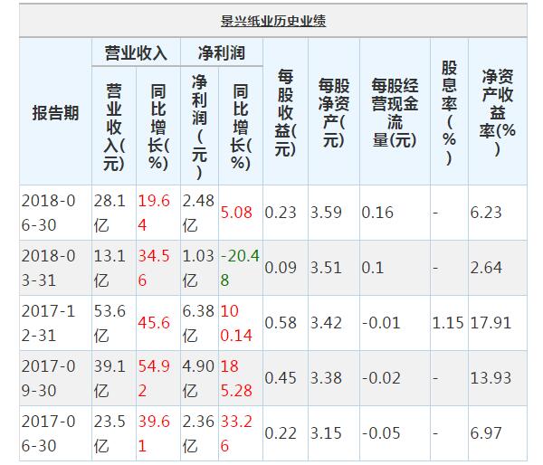 景興紙業(yè)主導產品為牛皮箱板紙、白面牛卡紙、紗管紙、高強度瓦楞原紙、紙箱等系列產品。地處長三角杭嘉湖平原中心地帶,瀕臨上海,地理條件優(yōu)越,交通便利,是全國最大的三家以專業(yè)生產A級,AA級牛皮箱板紙為主的造紙企業(yè)之一。公司自1984年成立以來,以技術為依托,以品質求生存,以服務爭市場,以效益謀發(fā)展,由一家名不見經(jīng)傳的造紙小廠發(fā)展成為擁有多家子公司的大型上市企業(yè)。現(xiàn)在的景興已然發(fā)展成以造紙為龍頭,集紙制品加工為一體的現(xiàn)代化企業(yè)。 近年來,公司的業(yè)績情況如下表所示: