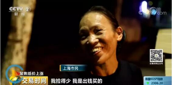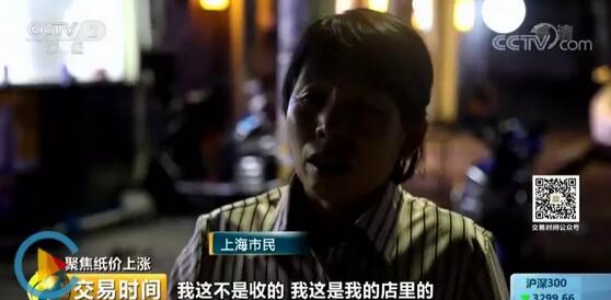 上海市民:我這不是收的,是我的店里的。 記者:現在廢紙大概什么價格? 上海市民:這個一塊錢一斤。