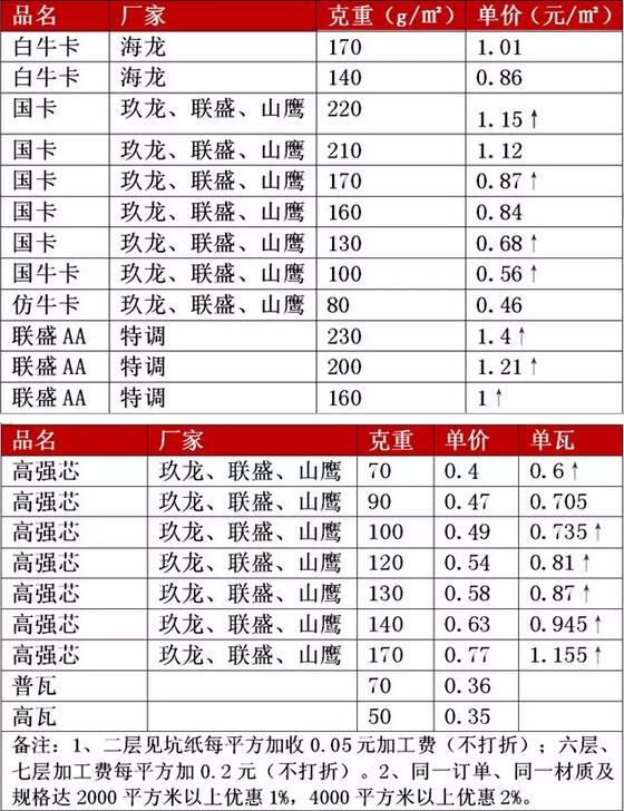 紙價作妖:玖龍報價4110-5630元/噸,紙板廠漲0.2-0.5元/平方 雖然正值“金九”旺季,距離中秋節(jié)和國慶節(jié)僅15-20天左右,但國廢和成品紙市場行情卻雙雙遇冷。旺季不旺的情況令諸多從業(yè)者信心不足,部分人士消極待市。華印小編據(jù)“紙去哪了研究院“為大家整理了玖龍幾大基地9月10日的報價,發(fā)現(xiàn)玖龍瓦楞紙、灰底白板紙單價已難見5000元以上價格,高克重灰底白板紙報價已低至4110元/噸。而報價在5000元/噸以上的多為高端的白面或涂布牛卡紙。 廣東東莞玖龍紙業(yè):9月10日玖龍牌白面牛卡紙126g報5630元/噸,140g報5530元/噸,170g報5430元/噸;海龍牌白面牛卡126g報5530元/噸,140g報5330元/噸,170g報5230元/噸;玖龍牌涂布牛卡紙140g/150g報5530元/噸,170g報5430元/噸,200g報5330元/噸。 江蘇太倉玖龍紙業(yè):9月10日地龍灰底白板紙250g報4510元/噸,350-400g報4310元/噸;江龍灰底白板紙240g報4310元/噸,300g報4210元/噸,350g報4110元/噸。(出廠電匯含稅價) 天津玖龍紙業(yè):9月10日玖龍瓦楞紙70g報4900元/噸,90g報4700元/噸,110g報4500元/噸,120-170g報4350元/噸;海龍瓦楞紙120g/130g/140g報4300元/噸。(含稅電匯出廠參考報價) 重慶玖龍紙業(yè):9月10日海龍白面牛卡紙140g報5450元/噸,170g報5300元/噸。(重慶地區(qū)出廠含稅電匯參考價) 而紙板價格方面,區(qū)域市場有回暖跡象。如福建地區(qū)的漳州市上宇包裝有限公司就因旺季來臨而訂單激增,近日接連發(fā)出了兩張漲價函。先是宣布9月8日起所有紙板上調(diào)5%,后又宣布9月12日起柚子箱上調(diào)0.2-0.5元/平方。這家公司的主要原紙供貨商為玖龍、聯(lián)盛、山鷹。