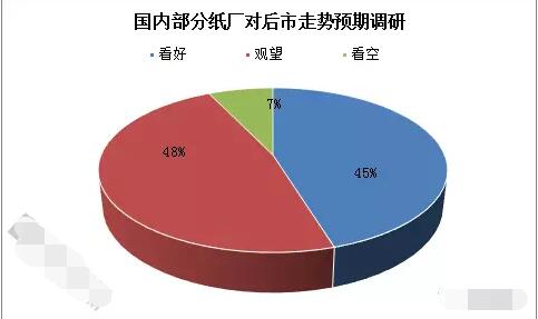 廢紙后市預(yù)測,9月后半期至十月假期結(jié)束后價格上升可能較大。因今年中秋國慶兩假不合并,假期較長,紙廠開工后為刺激上游打包站,帶動原料成本上漲的可能性相也對較大。提醒留意紙廠放假前后紙價上升。預(yù)計雙節(jié)過后紙價將有所穩(wěn)定。 瓦楞箱板紙后市預(yù)測,卓創(chuàng)資訊通過對46家瓦楞紙及箱板紙中大型紙企調(diào)研顯示,對后市持觀望心態(tài)的占比44%,環(huán)比增加1個百分點(diǎn);對后市持看空心態(tài)的占比39%,較上周增加6個百分點(diǎn);對后市持看好心態(tài)的占比17%,環(huán)比下滑7個百分點(diǎn)。近期瓦楞紙及箱板紙市場呈現(xiàn)疲軟下滑走勢,目前上下游仍顯僵持,且規(guī)模紙企報價穩(wěn)定執(zhí)行優(yōu)惠,導(dǎo)致場內(nèi)人士持觀望心態(tài)仍居多。但隨著中秋節(jié)需求掃尾,場內(nèi)看空人士逐漸增多,但仍存少量持看好心態(tài)人士。易貿(mào)紙業(yè)分析,從長期來看由于紙廠周期性補(bǔ)充原料,國廢行情將維持區(qū)間震蕩,9月底或10月初或仍有一波小高峰出現(xiàn)。