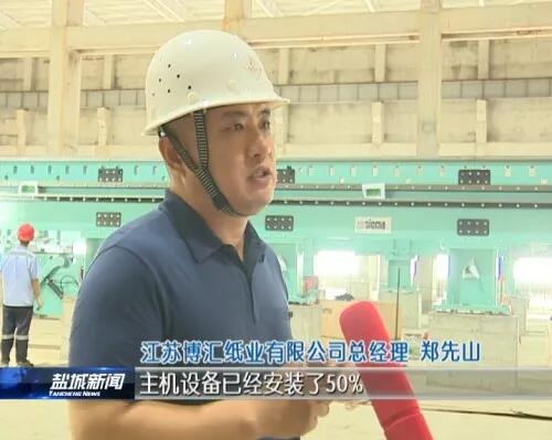 江蘇博匯紙業有限公司總經理鄭先山:主機設備已經安裝了50%,預計10月份,主機設備安裝結束,11月份電器自動化將安裝結束,12月份(進行)整個的單機和聯動調試。
