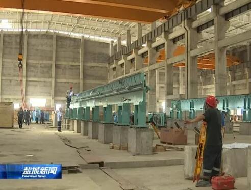 在江蘇鹽城大豐港經濟開發區江蘇博匯紙業有限公司二期項目現場,記者看到工人們正在安裝從德國福伊特公司引進的板紙機,目前,該項目整個土建工作已經基本結束,預計10月份主機設備安裝結束,12月份(進行)整個的單機和聯動調試。