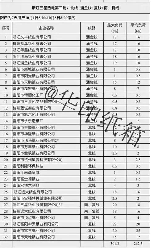 9、浙江富陽40家紙廠:分兩批停限產(chǎn) 9月24日-10月8日,浙江富陽40家紙廠分兩批停限產(chǎn)7-14天,以下是停限產(chǎn)企業(yè)名單: