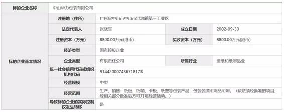 中山華力包裝有限公司成立于2002年,注冊資本為8800萬港元。于公告日期,其為華僑城亞洲的間接全資附屬公司,主要從事紙箱及紙制包裝產(chǎn)品的制造及銷售。 根據(jù)北京產(chǎn)權(quán)交易中心的掛牌信息,中山華力包裝公司2017年?duì)I收3631.72萬元,凈利潤850.05萬元;2018年9月30日財(cái)務(wù)報表顯示,今年前9個月,中山華力營收2788.55萬元,凈利潤181.22萬元,總負(fù)債4937.47萬元。