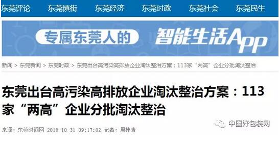 近日,東莞市大氣污染防治辦公室印發(fā)實施《東莞市淘汰高污染高排放產(chǎn)業(yè)和企業(yè)工作方案》,目前已正式印發(fā)給各鎮(zhèn)街(園區(qū)),并發(fā)布了高污染高排放企業(yè)的名單,明確規(guī)定對全市113家高污染高排放企業(yè)進行分類分批淘汰整治。 事實上,近年來東莞市對“兩高”企業(yè)的整治就從未停過,這使得作為造紙重地的東莞,未來幾年或在產(chǎn)業(yè)上迎來一次“大換血”。