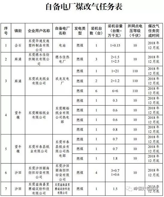 據(jù)悉,東莞市在推動工業(yè)企業(yè)完成煤改氣任務(wù)方面,制定了自備電廠煤改氣任務(wù)表,要求20家企業(yè)在2018年12月底前完成煤改氣任務(wù)。其中,造紙行業(yè)獨占16家,東莞玖龍、東莞理文等業(yè)內(nèi)龍頭紙廠上榜,一共涉及47臺電力設(shè)備。