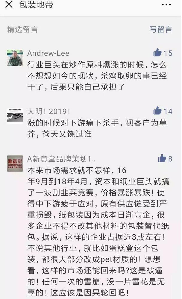 過去兩年來,紙價暴漲暴跌,一箱難求,促使更多用戶開始尋找紙包裝的替代品,由此來達到降低成本的目的。比如:塑料包裝,二手紙箱,循環包裝等代替了紙箱包裝,分攤了紙箱包裝的需求市場。 9樓市、股市、匯率、債務問題影響長遠預期 近年來,房價居高不下,六個錢包供養一套房的情況普遍存在,勒緊褲帶供一套房導致家庭消費能力越來越弱。目前高房價的擠出效應,影響到了居民的日常生活和消費行為,已經成為制約消費啟動的最大阻力。除此之外,還有股市、匯率、債務問題嚴重消耗了人民的消費能力,政府和居民雙雙面臨重重的債務壓力,只能緊衣縮食,消費自然受到影響。因此,只要樓、股、債、匯的警報沒有解除,經濟不能企穩回升,消費永遠是個問題,包裝業自然也不能獨善其身。 10龍頭紙企失去了統攝江湖的銳氣 過去兩年時間,在龍頭紙業的率領下,原紙、紙板及紙制品一路暴漲,下游行業只能認命,造紙和包裝企業都成為獲利者。但到了新的階段,并非由需求拉動的包裝紙漲價走進了死胡同。在產能愈發過剩的情況下,整體經濟龍頭企業失去了統攝江湖的英精銳氣,過去一呼百應的局面早已不存在,紙包裝業想再次把通脹轉移出去,難度很大。
