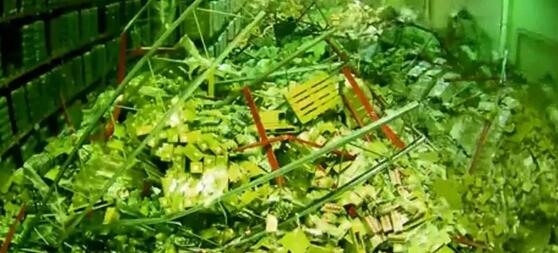 從視頻可以看出,第一個倒塌貨架引發了多米諾骨牌效應,與之相鄰的整座倉庫貨架先后坍塌,紙箱堆積成山,叉車早已被埋得看不見影蹤。