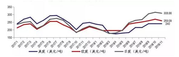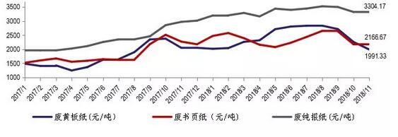 導(dǎo)語:受下游包裝市場需求減少的影響,今年包裝原紙的產(chǎn)銷量都在下滑,原材料也不再是搶手貨。再加之包裝紙需求異常疲軟,各大紙企紛紛采取了停機(jī)保價的策略。另外受貿(mào)易戰(zhàn)的影響,進(jìn)口美廢已經(jīng)開始加征25%的關(guān)稅,也影響了造紙廠進(jìn)口美廢的積極性。就目前來看市場帶動性的薄弱,短期仍無回漲可能。 國廢斷崖式下跌,部分廠家價格比美廢便宜! 近日全國廢紙價格走勢,可以說綠如草原。全國范圍內(nèi),以各大龍頭紙企為首,全部呈現(xiàn)出跌跌不休的局面。 據(jù)生意社觀測,從9月份開始,國廢價格開始出現(xiàn)大幅度下調(diào),目前的價格相比最高點已下跌近一半。11月1日最新一批廢紙進(jìn)口許可名單的公布,令原本有些上漲勢頭的國廢價格再度掉頭向下。接著結(jié)束了本應(yīng)是旺季節(jié)點的雙十一之后,廢紙的價格再次出現(xiàn)下滑并一直延續(xù)至月末。11月28日第25批次新增外廢的總核定量為0.4355萬噸,是今年除第14批外(許可量為0),單批次許可量最少的一次。截至目前,今年的總核定量已達(dá)到了1815.0651萬噸。 目前來看,部分地區(qū)廢紙均價已跌破1800元關(guān)口。國廢價格與外廢價差進(jìn)一步縮小;考慮25%關(guān)稅因素,當(dāng)前美廢價格已高于部分國廢成本。 進(jìn)口廢紙國際月均價