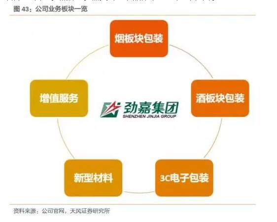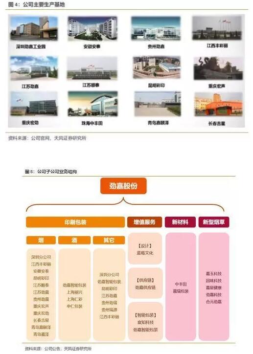 近日,天風(fēng)證券對中國包裝龍頭企業(yè),中國煙包的領(lǐng)軍企業(yè)勁嘉公司進(jìn)行了全面的調(diào)研與評估。這篇精彩絕倫的報(bào)告,以非常詳實(shí)的數(shù)據(jù)向我們展示了印刷包裝龍頭的強(qiáng)悍實(shí)力。并從行業(yè)發(fā)展趨勢出發(fā),解讀出未來包裝印刷龍頭應(yīng)該具備的核心競爭力,對全行業(yè)均有較大的啟示。  概覽:煙標(biāo)行業(yè)龍頭,業(yè)績穩(wěn)步上升 公司成立于1996年,2007年12月A股中小板上市(證券簡稱:勁嘉股份,證券代碼:002191),是我國卷煙包裝行業(yè)龍頭。公司主營業(yè)務(wù)為包裝印刷品及包裝材料的研發(fā)與生產(chǎn),并提供包含品牌設(shè)計(jì)的包裝整體解決方案。公司目前主要為煙草工業(yè)公司和知名消費(fèi)品企業(yè)提供綜合包裝服務(wù),涉及的包裝產(chǎn)品覆蓋煙、酒、3C等消費(fèi)類產(chǎn)品。近年來,公司提出“大包裝”戰(zhàn)略,在傳統(tǒng)煙標(biāo)制造的基礎(chǔ)上,積極探索開展多個(gè)品類的精品彩盒、智能包裝及新型煙草相關(guān)業(yè)務(wù)。 在傳統(tǒng)煙標(biāo)產(chǎn)品基礎(chǔ)上,公司不斷拓展產(chǎn)品品類及服務(wù)深度。公司在傳統(tǒng)煙標(biāo)、精品煙盒業(yè)務(wù)的基礎(chǔ)上,通過對包裝品類的拓展,目前已將包裝產(chǎn)品范圍擴(kuò)大至精品酒盒以及3C產(chǎn)品等,并從僅提供印刷包裝生產(chǎn)服務(wù)延展至覆蓋設(shè)計(jì)、選材、生產(chǎn)、品牌營銷等全環(huán)節(jié)包裝服務(wù)。同時(shí),公司長期探索與主線業(yè)務(wù)相關(guān)的新型產(chǎn)品,其中涉及包裝新型材料,如素面鐳射膜等;新型煙草板塊,公司牽手小米產(chǎn)業(yè)鏈公司、云南中煙等共同探索;以及增值服務(wù)產(chǎn)品,主要為客戶提供個(gè)性化定制和包裝服務(wù)延伸,包括數(shù)據(jù)采集、鑒真溯源等。