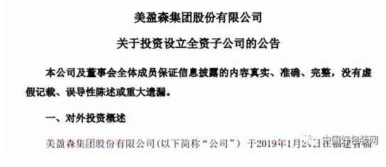 1月24日晚間,美盈森集團股份有限公司公告稱,公司于2019年1月24日在福建省福清市投資設立全資子公司福建美盈森環保科技有限公司,并領取了營業執照。