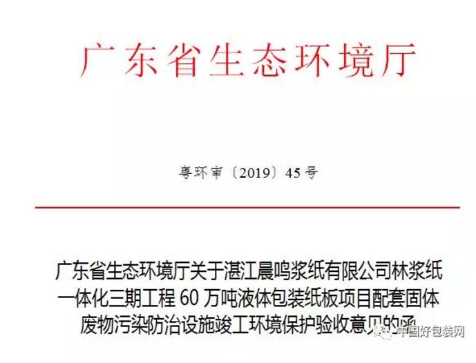 2月18日,廣東省建設(shè)項(xiàng)目環(huán)境保護(hù)審批網(wǎng)發(fā)布了“湛江晨鳴林漿紙一體化三期工程60萬噸液體包裝紙板項(xiàng)目環(huán)保驗(yàn)收公告”。