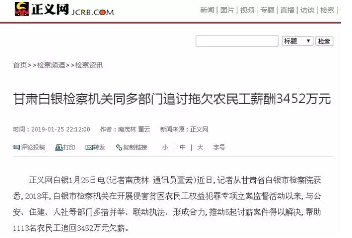 近日,正義網(wǎng)記者從甘肅省白銀市檢察院獲悉,2018年白銀市檢察機(jī)關(guān)在開展侵害貧困農(nóng)民工權(quán)益犯罪專項(xiàng)立案監(jiān)督活動(dòng)以來(lái),與公安、住建、人社等部門多措并舉、聯(lián)動(dòng)執(zhí)法、形成合力,推動(dòng)5起討薪案件得以解決,幫助1113名農(nóng)民工追回3452萬(wàn)元欠薪。