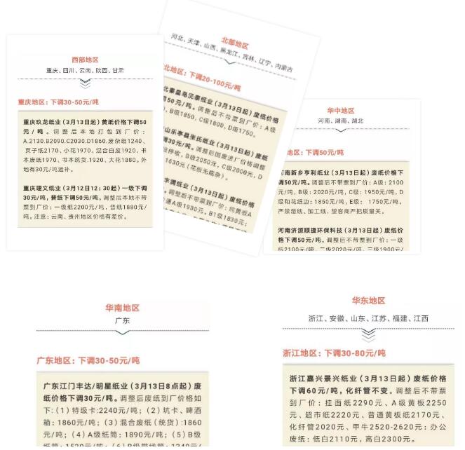 繼玖龍降價(jià)之后,原紙、廢紙聯(lián)動(dòng),近百家紙廠紛紛跟緊,緊急調(diào)價(jià)。那么這次紙廠集體微調(diào)紙價(jià)背后的推動(dòng)力和原因是什么?降價(jià)形勢(shì)會(huì)持續(xù)多久呢? 昨天,玖龍紙業(yè)正式施行對(duì)紙價(jià)進(jìn)行100~200的降價(jià)調(diào)整舉措,此后下游的紙板行業(yè)迅速做出反應(yīng):珠三角的紙板廠給出了三到五個(gè)點(diǎn)的優(yōu)惠,而長(zhǎng)三角的紙板行業(yè)也有兩個(gè)點(diǎn)的微調(diào)。