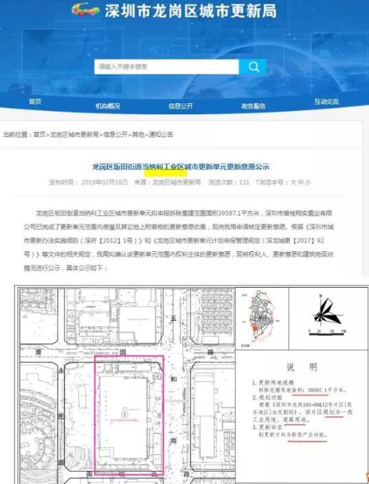 深圳市碧桂翔實置業有限公司已完成了更新單元范圍內房屋及其它地上附著物的更新意愿收集現向更新局申請核定更新意愿。現在基本是擬確認該更新單元范圍內權利主體的更新意愿現將權利人、更新意愿和建筑物現狀情況進行公示。 在2018年當納利坂田工廠深圳當納利印刷有限公司土地賣給了碧桂園。現在深圳的當納利工業區又進入了深圳城市更新名單,廠區將被拆除重建。 1993年,當納利進入中國市場,決定和國企深圳石化下屬的旭日印刷公司合資成立當納利旭日印刷有限公司。2018年初,財經媒體“界面”披露了深圳當納利地塊被碧桂園以約16億元價格收購的消息。 近些年來,隨著深圳產業不斷轉型升級,印刷等一些畝均產值不高的產業逐漸被淘汰出局,當納利雖然貴為全球印刷業龍頭,也避免不了搬離的命運,真是令人不勝感懷。