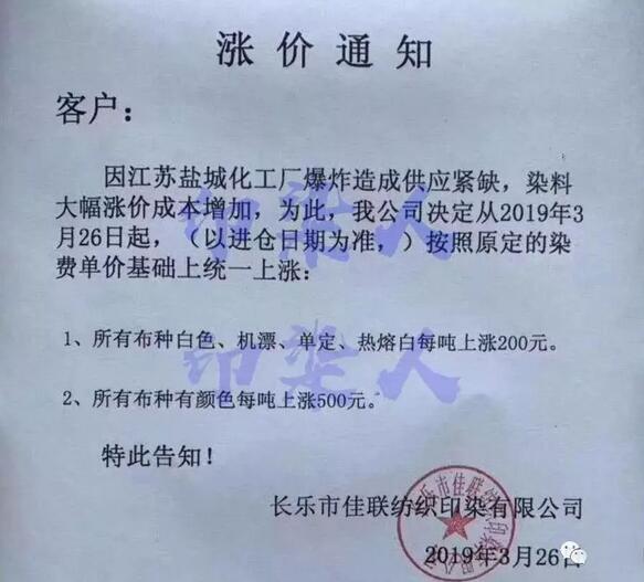 ▲染料企業掀起漲價潮,廣東、福建、浙江連發7份染費漲價通知 間苯二胺 價格瘋狂上漲!