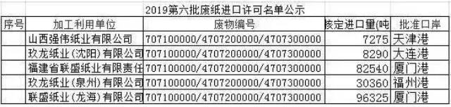 4月23日,固廢中心官網(wǎng)數(shù)據(jù)公布2019年第6批外廢進(jìn)口審批,第6批廢紙進(jìn)口許可批文核定進(jìn)口量22.479萬噸,下跌幅度超過90%,截至目前,今年的總核定量已達(dá)到了798.3525萬噸。