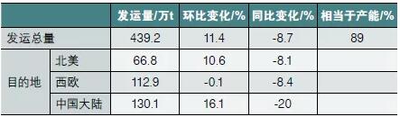 國際漿市今年來呈現大跌后持平或小幅反彈情形。市場人士觀察,在中國大陸市場需求尚未大幅增長的情況下,預期漿市短期可能持平。而中美貿易戰后續效應,中國大陸需求是否明顯回溫,及匯率變化等仍將是影響漿價未來走勢的關鍵因素。 國際漿價自2016年起,經歷了一段漲幅高且漲速快的時期。期間,國際漿價在全球主要市場創下歷史新高。2018年7月之前,國際漿價在亞洲及歐洲市場呈現忽而走高,忽而持平的格局,但基本仍維持上升之勢。8月國際漿價在亞洲市場終于出現大幅下調,主要是NBSK漿價下調,9月隨即向上拉升,10月基本持平。至于歐洲市場在該段時間大致呈持平狀態,北美市場上漲之勢不變。 到了11月和12月,國際漿價在各主要市場再度出現大變化。在亞洲市場,長短纖漿價格均連月同步大跌;在歐洲市場則呈現小幅下跌;在北美市場則由小漲轉為小跌,似乎開始有上漲無力的跡象顯現。實際上,除了期貨市場下跌外,亞洲的現貨市場跌幅也非常明顯;北美現貨市場也呈現下跌。顯然,國際漿價將近兩年的上漲趨勢在去年第4季度開始反轉。 表1 2018年12月全球商品漿發運情況