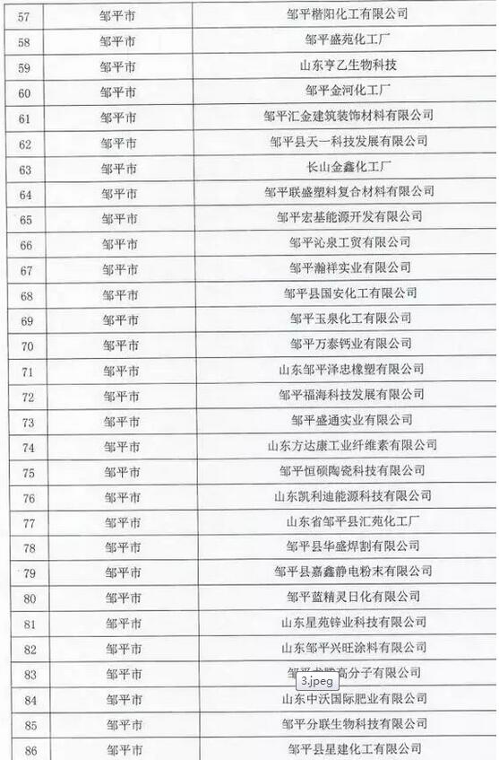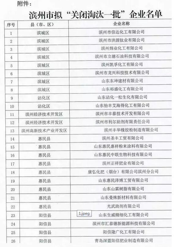 濱州擬“關閉淘汰一批”(第一批)化工生產企業名單